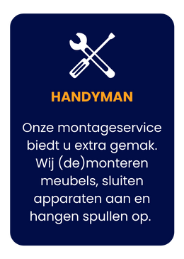 Demontage en Montage: Wij kunnen u helpen met het demonteren en monteren van meubels en apparatuur. Dit bespaart u tijd en moeite tijdens uw verhuizing.