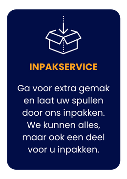 Inpakken en Uitpakken: Laat het inpakken en uitpakken van uw bezittingen aan ons over. Onze professionele verhuizers zorgen ervoor dat uw spullen veilig en zorgvuldig worden ingepakt en bij aankomst weer worden uitgepakt.